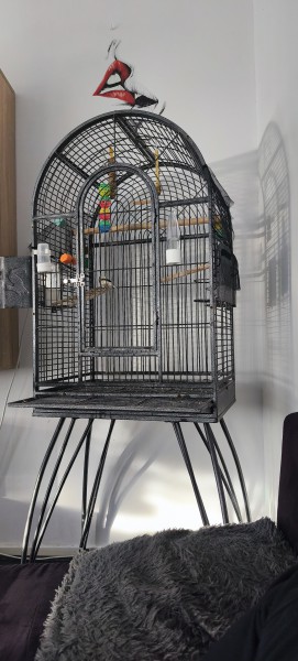 Sprzedam piękną dłużą solidna klatkę na kółkach cena 90 EUR . Mam też na sprzedaż śliczne młode kanarki oraz żeberki 3 pary.