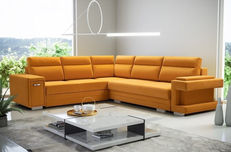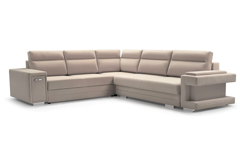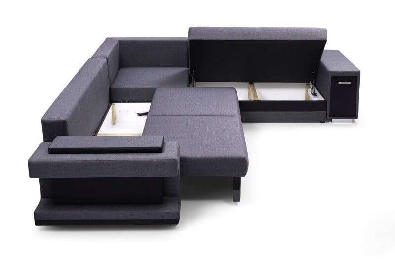 Nowoczesna i wyjątkowa propozycja do dużych salonów. Wygodny mebel wypoczynkowy z wieloma funkcjami dodatkowymi. W dzień sprawdzi się jako duża sofa narożna, która pomieści domowników i gości. Nocą zamienisz go w wygodne łóżko dla siebie lub znajomych.