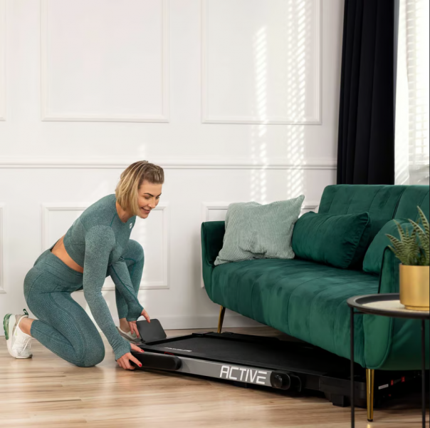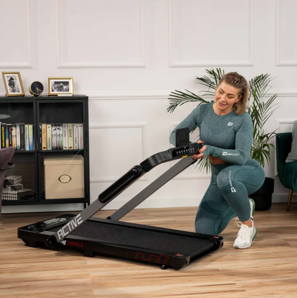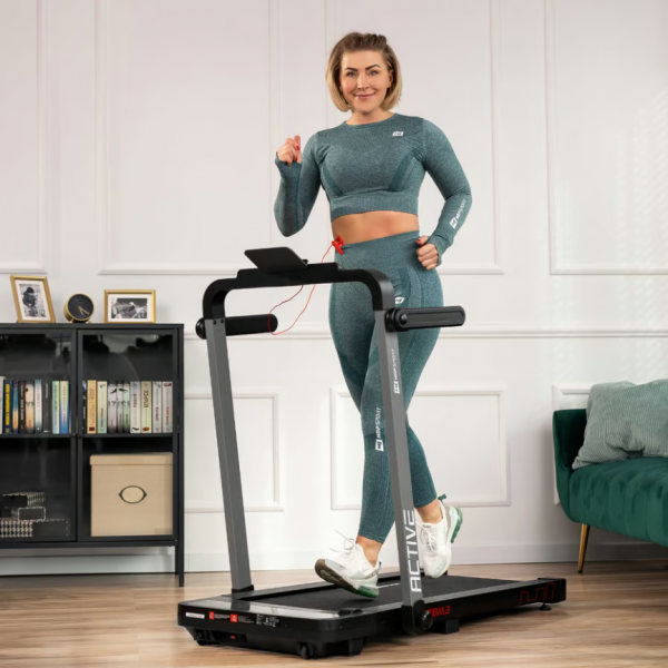 Bieżnia domowa HS-1300WLB Active posiada wielowarstwowy pas biegowy i system amortyzacji