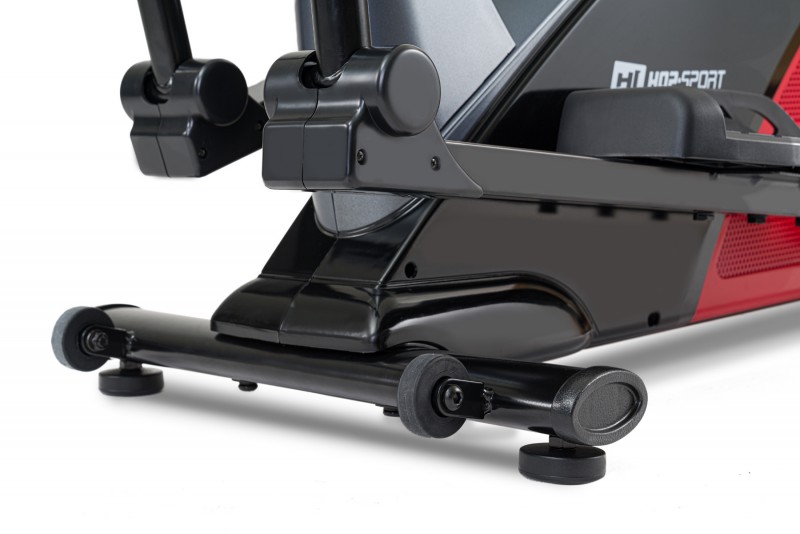 Możliwość precyzyjnego poziomowania maszyny, za pomocą stopek umieszczonych w przednim i tylnym stabilizatorze, pozwala wyeliminować ewentualny problem nierównego podłoża. Dzięki temu masz pewność, że orbitrek stoi stabilnie, a Twój trening będzie komfortowy i bezpieczny.