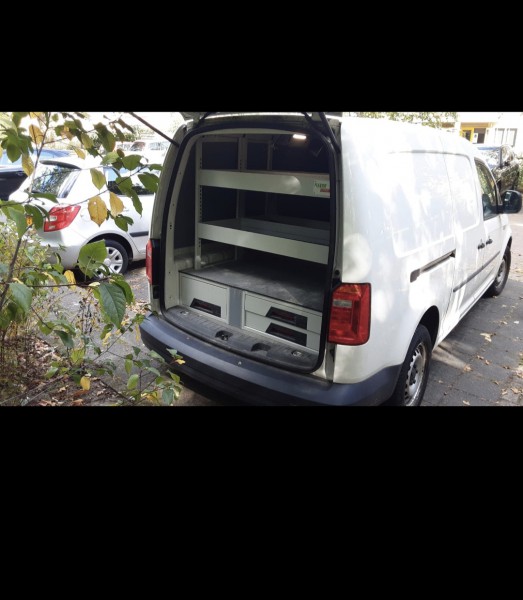 Samochód ma zamontowane regały z tyłu, idealnie nadaje sie na przewóz narzędzi. Samochód typowy do pracy.