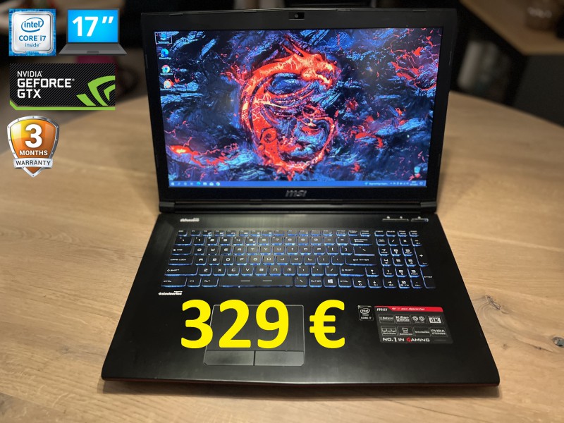 Sprzedam gamingowy MSI GE72 2QC. Laptop w dobrym stanie technicznym i wizualnym. Posiada normalne ślady użytkowania. Gwarancja rozruchowa 90 dni.