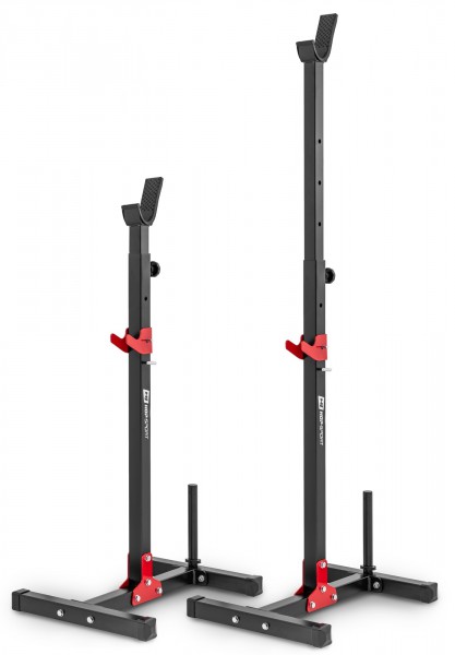 Stojaki HS-1005L z regulacją wysokości to uniwersalne narzędzie do domowej siłowni. Dzięki stabilnej konstrukcji i zastosowanych rozwiązaniach, wspomogą Twój trening i zagwarantują bezpieczeństwo podnoszenia ciężarów. Możesz używać ich w zestawie z ławeczką lub samodzielnie.