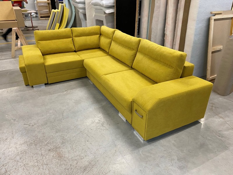 Nowoczesna luksusowa kanapa narożna z funkcją spania. Wyposażony w niezbędne funkcję i nowoczesne udogodnienia. Modny, solidny i elegancki mebel, który połączy funkcję salonu i sypialni w jednym pomieszczeniu. Wykonany przy użyciu najwyższej wysokiej jakości materiałów, gwarantujących wieloletnie użytkowanie.