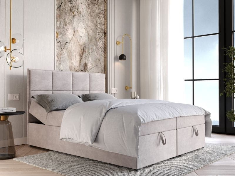 Dwa niezależne pojemniki na pościel ułatwią porządkowanie. Materac wykonany na sprężynach typu bonell zapobiegnie powstawaniu wgłębień. Dostępność w szerokiej gamie tkanin pomoże wybrać tkaninę idealną.