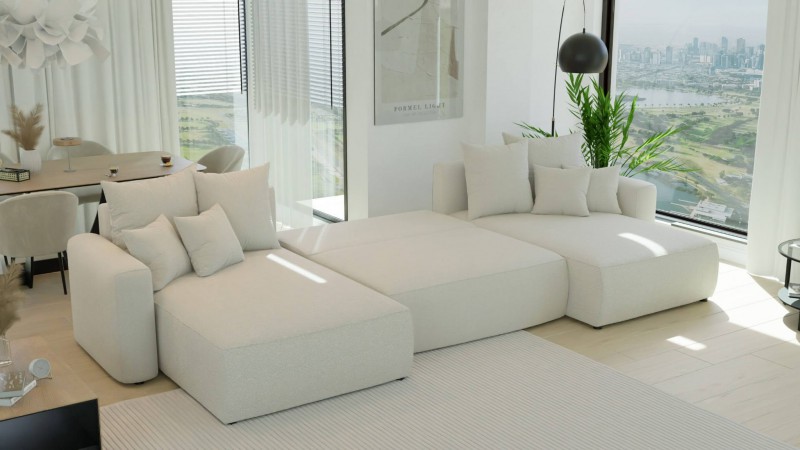 Narożnik Bari został zaprojektowany z dbałością o szczegóły. Eleganckie linie, nowoczesny kształt i miękkie poduszki zapewniają nie tylko wizualny akcent w Twoim salonie, ale także niezrównany komfort użytkowania.