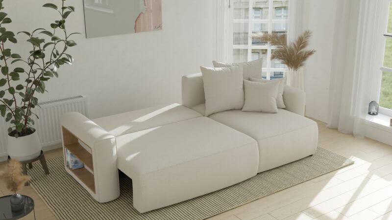 Zbudowany z Myślą o Przestrzeni: Wyposażony w zintegrowaną półkę boczną, Solero idealnie sprawdza się do przechowywania książek, pilotów czy dekoracyjnych drobiazgów.