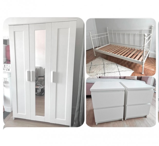 BIAŁE MEBLE - Solidna komoda + Garderoba z lustrami