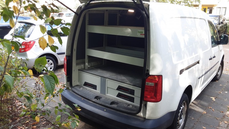 Samochód ma zamontowane regały z tyłu, idealnie nadaje sie na przewóz narzędzi. Samochód typowy do pracy.
