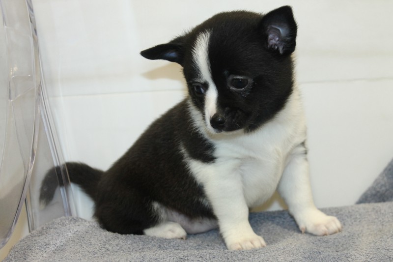Maluszek bardzo żywiołowy, ciągle chętna do zabawy, bardzo ładnie zbudowana i ubarwiona, krótka kufka, kraj pochodzenia Polska.