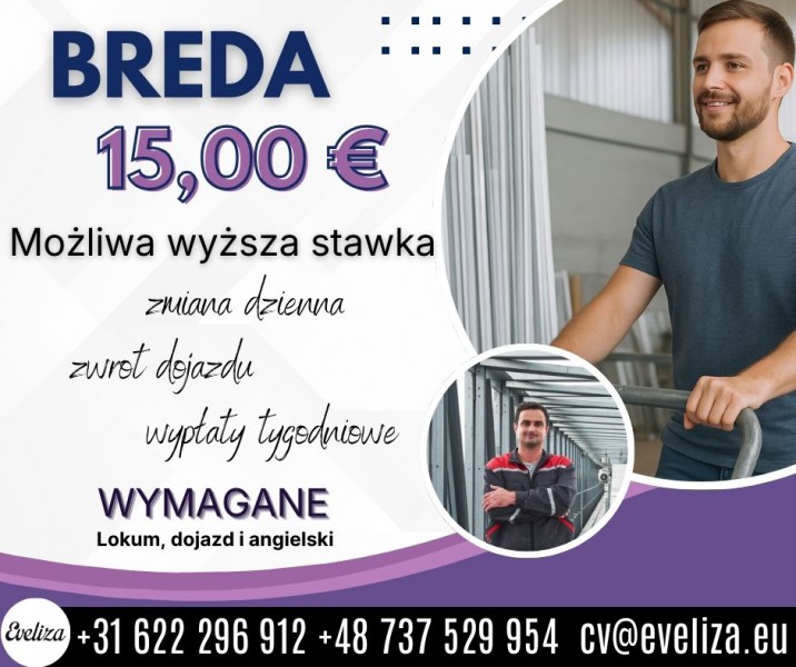 W małym, kameralnym zakładzie w Bredzie szukamy osoby, która: