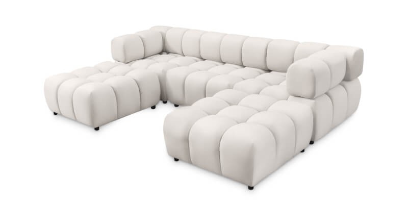 Wyjątkowy narożnik w stylu chmurki dedykowany do nowoczesnych salonów. Duży mebel wypoczynkowy w kształcie U, który pomieści całą rodzinę. Piękny i wygodny będzie funkcjonalną kanapą i ozdobą salonu. Wypełnione połączeniem sprężyny falistych oraz pianki, co zapewnia wieloletnie użytkowanie.