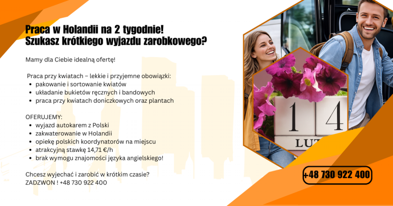 Praca przy kwiatach – Wyjazd na ok. 2 tygodnie!