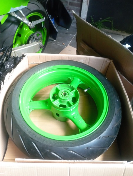 W dobrym stanie kolory kół przód tył 99 ninja i wiele innych części dwie sztuki Czarni zielona