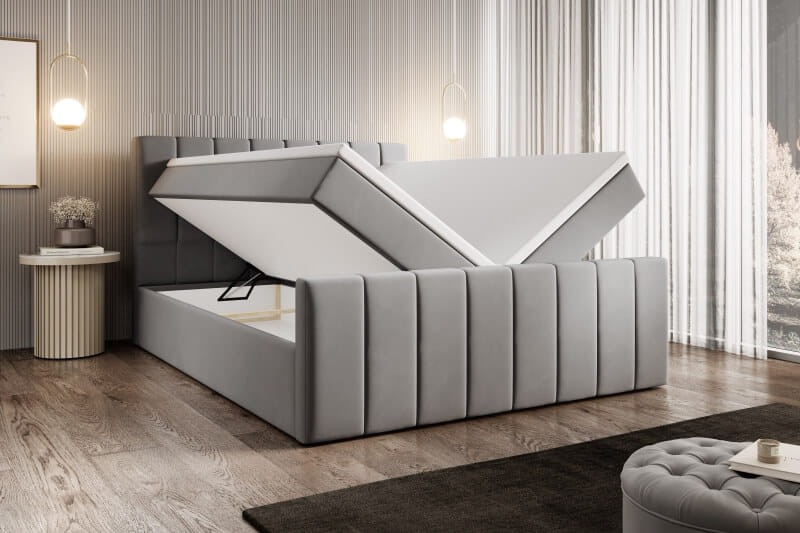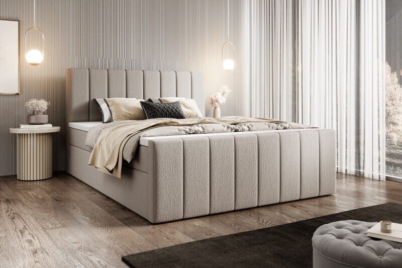 Wysokie łóżko boxspring z 2 pojemnikami na pościel BORA