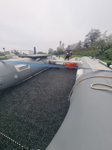 Cały ponton na przyczepie, rolkach,płozach i trap, który pomaga przy wyciąganiu do sprzedaży!