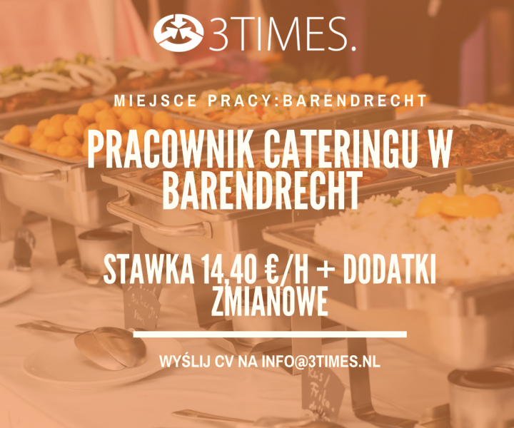 Szukasz stabilnej pracy w spokojnym, przyjaznym środowisku? Do naszego zespołu w Barendrecht poszukujemy pracownika cateringu odpowiedzialnego za wydawanie posiłków pracownikom dużej firmy logistycznej. Praca jest lekka, prosta i idealna dla osób, które cenią porządek, dobrą atmosferę i kontakt z ludźmi. Do Twoich zadań będzie należeć wydawanie posiłków, dbanie o czystość stanowiska oraz drobne prace pomocnicze w kuchni. Oferujemy pracę 4–5 dni w tygodniu w godzinach 11:00–19:30 oraz trzy weekendowe dyżury w miesiącu w godzinach 9:00–15:00. Szukamy osób odpowiedzialnych, komunikatywnych i punktualnych oraz znających język niderlandzki. Doświadczenie mile widziane, ale nie wymagane, wszystkiego nauczymy na miejscu. To świetna okazja, jeśli chcesz pracować w uporządkowanym środowisku, w stałych godzinach i w zespole, który naprawdę się wspiera. Jeśli czujesz, że to praca dla Ciebie, wyślij zgłoszenie i porozmawiajmy. Wyślij swoje cv na [email protected] my skontaktujemy się z Tobą osobiście.