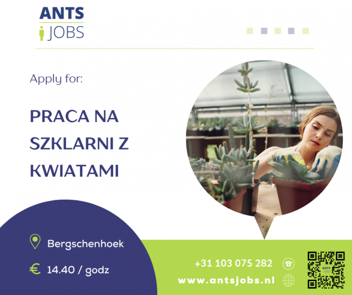 Dla naszego klienta w miejscowości Bergschenhoek, specjalizującego się w przygotowywaniu zamówień kwiatowych, poszukujemy energicznych i zmotywowanych osób do pracy na szklarni .