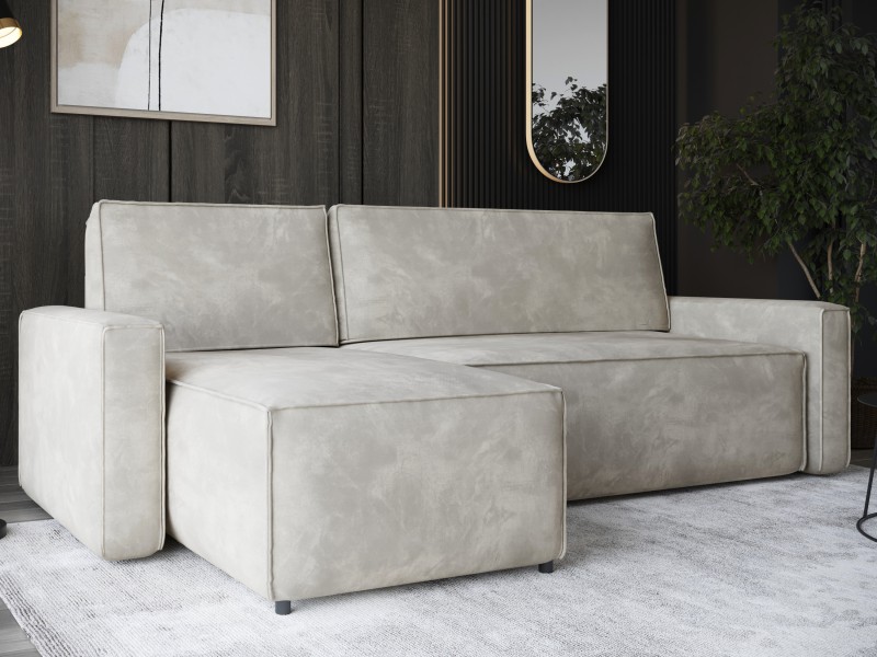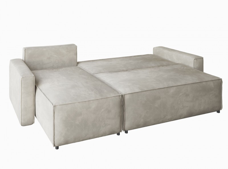 Mała kanapa narożna z funkcją spania i pojemnikiem na pościel. Wypełnieniem jest wytrzymała sprężyna bonell, która natychmiast powraca do pierwotnej formy. Głębokie siedzisko zapewnia wygodę.