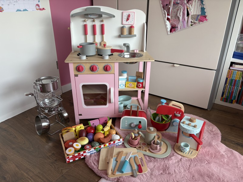 Witam mam do sprzedania kuchnię dla dziecka. Kuchnia i akcesoria są drewniane. Nie jest ona nowa widać w jednym miejscu kreski mazakiem. Za całość 50 euro