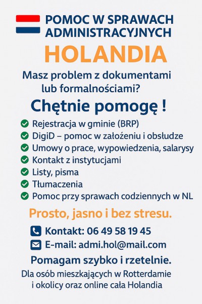 Oferuję pomoc w sprawach urzędowych w Holandii,