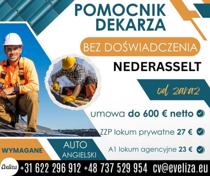 Pomocnik dekarza BEZ DOŚWIADCZENIA Nederasselt