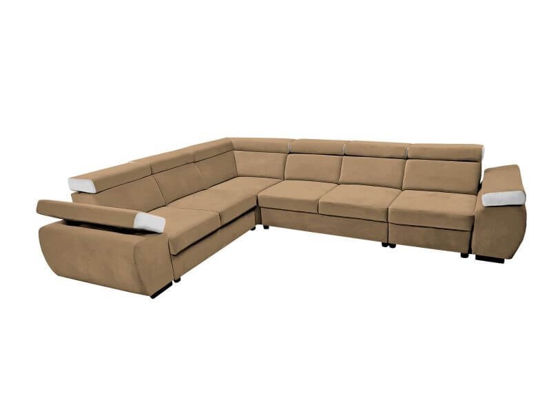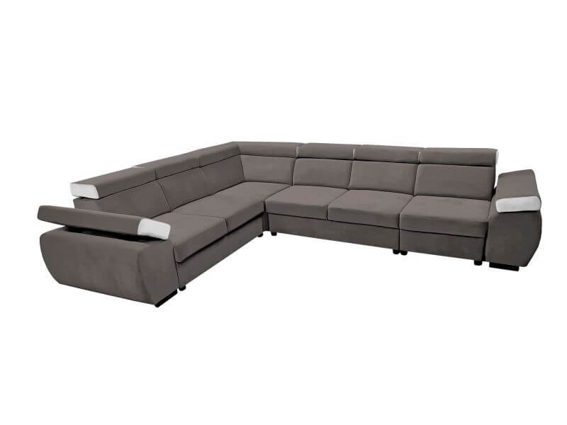 Narożnik MARK to idealna propozycja dla osób lubiących styl i elegancję. Jest to mebel bardzo uniwersalny. Główną jego zaletą jest mozliwość zmiany strony ustawienia. Może być lewo, lub prawostronny. Jest to duża zaleta dla osób lubiących zmiany i przemeblowania. Mark to kwintesencja wygody i elegancji. Posiada ruchome zagłówki, jakże ważne przy oglądaniu telewizji, czy czytaniu książki, cały czas dbając o Twój komfort wypoczynku. Takie rozwiązanie powala ułożyć się w dogodnej, odprężającej pozycji. Kanapa posiada funkcję spania. Całość osadzona została na delikatnych czarnych nóżkach, a tkanina użyta przy produkcji narożnika MARK jest niezwykle miękka i przyjemna w dotyku.