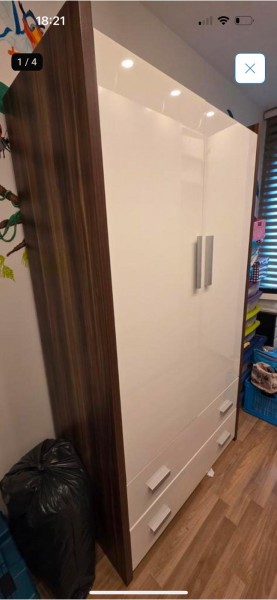 Szafa połyskiwać bialo -brązowa 105 szer 200 wysoka możliwość transportu