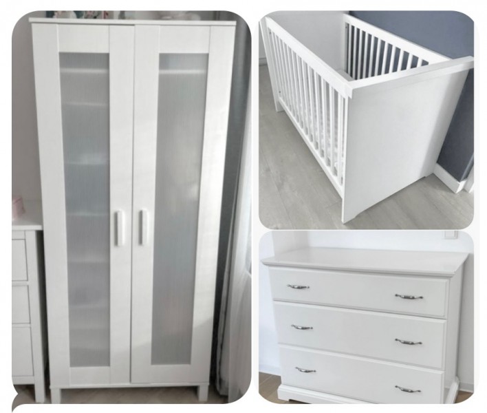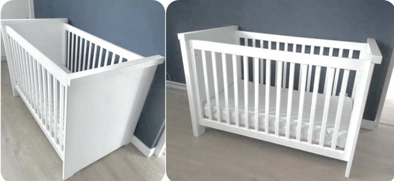*Białe solidne łóżeczko z materacem. Regulowane poziomy wysokości. wymiary: 120x60