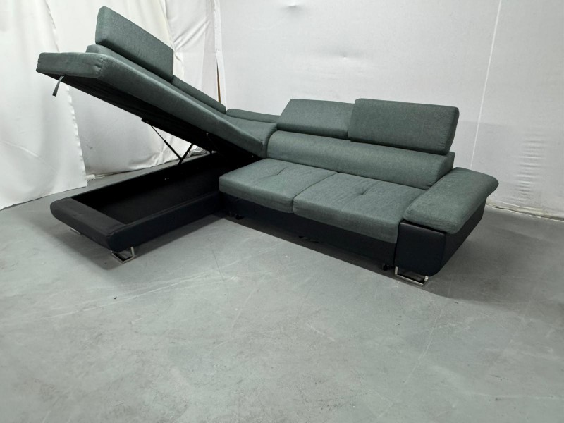 Narożnik z funkcją spania . delikatne uszkodzenie z możliwością transportu.