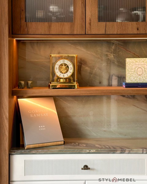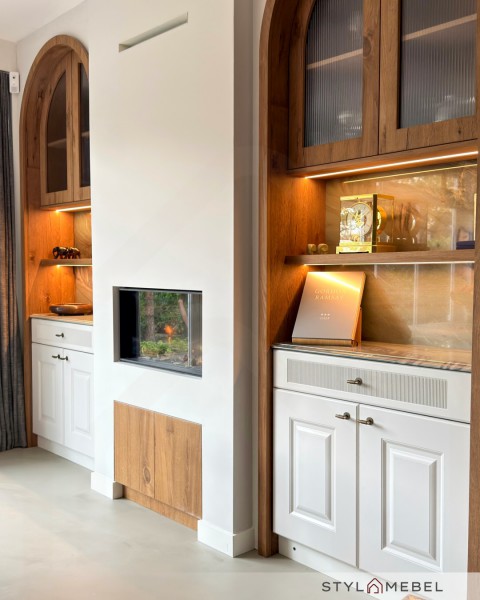 Łuki, nieregularne kształty i ciepłe podświetlenie sprawiają, że ta strefa wygląda lekko, a jednocześnie bardzo „premium”.