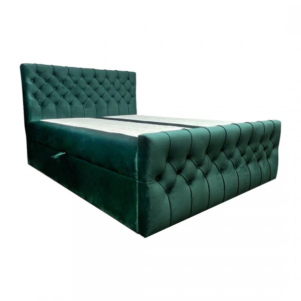 Wysokie łóżko boxspring z 2 pojemnikami na pościel DIANA