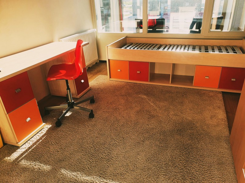 Mam na sprzedaż meble dziecięce z solidnego (ciężkiego) drewna. Łóżko 90×200 (ewentualnie z materacem), regał/półka na zabawki, biurko z krzesłem. Stan mebli: używane jak nowe. Ewentualnie mogę dodać półkę Spider-Man na zabawki. Meble zarówno dla chłopca jak i dziewczynki. Odbiór w Tilburgu.