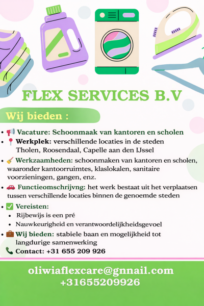 Vacature: Schoonmaak van kantoren en scholen Locatie: verschillende locaties in de steden Tholen, Roosendaal, Capelle aan den IJssel.