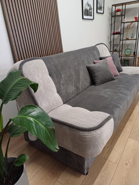 Klasyczna rozkładana kanapa, która sprawdzi się w salonie oraz pokoju dziennym. Wygodna, łatwa w codziennym użytkowaniu. Wysokie oparcie gwarantuje solidne podparcie dla całych pleców.