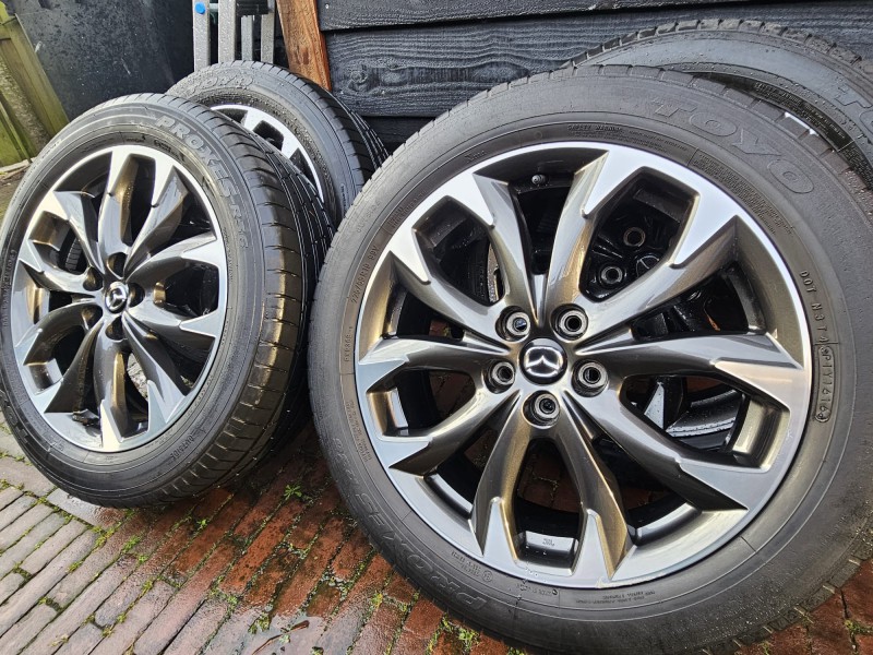 Na sprzedaż oryginalne felgi aluminiowe Mazda CX-5 19 cali z oponami letnimi TOYO.