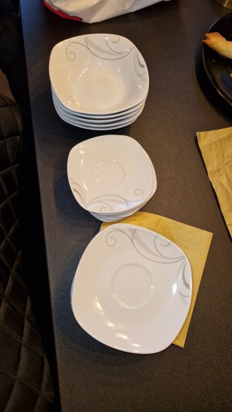 Witam, oddam w gratisie zestaw talerzykow deserowych malych i srednich, plus kubki duze , srednie i male do ekspresso. Wszystko w jednym kolorze