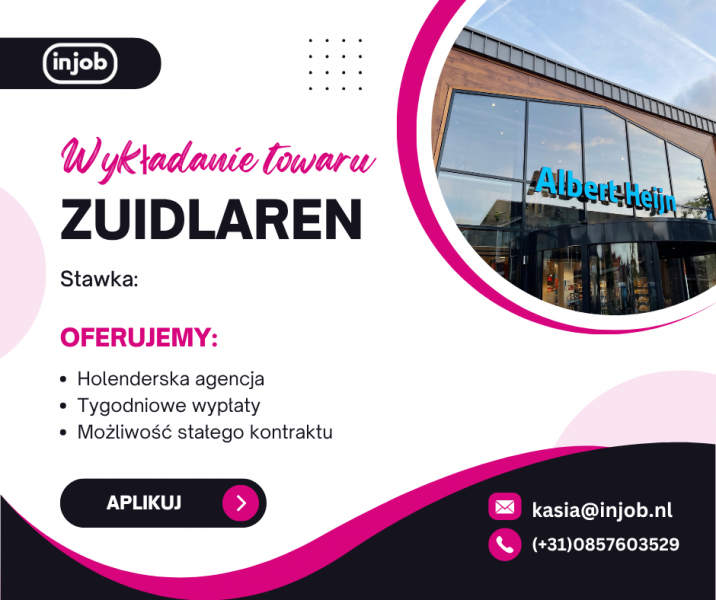 Dla naszego klienta – sieci supermarketów Albert Heijn – poszukujemy osób do pracy przy wykładaniu towaru. Praca polega na uzupełnianiu półek zgodnie z obowiązującymi standardami sklepu, dbaniu o ekspozycję produktów i utrzymaniu porządku w przestrzeni sklepowej.