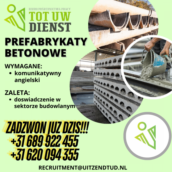 Poszukujemy doświadczonych pracowników budowlanych oraz produkcyjnych do realizacji różnorodnych projektów na terenie Holandii. Osoba zatrudniona będzie odpowiedzialna za: