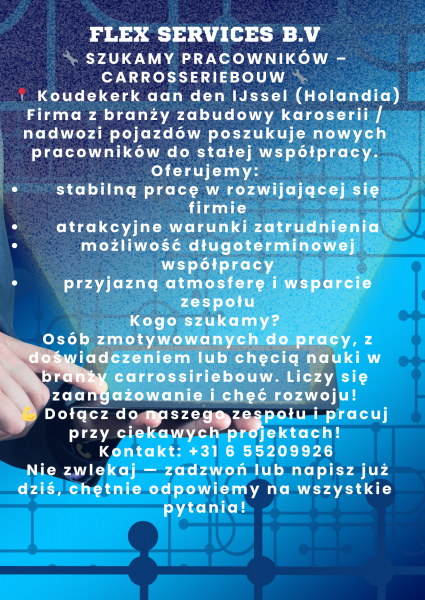 Osób zmotywowanych do pracy, z doświadczeniem lub chęcią nauki w branży carrossiriebouw. Liczy się zaangażowanie i chęć rozwoju!