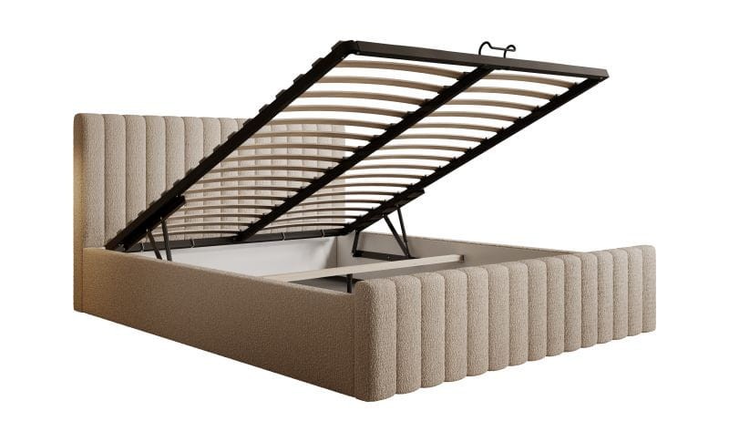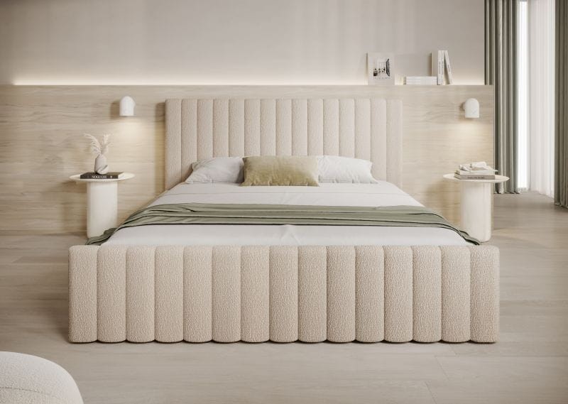 Łóżko prezentuje się zadziwiająco lekko i elegancko. Aksamitne, delikatne w dotyku obicie dodaje meblowi stylu oraz sprawia, że łóżko doskonale komponuje się praktycznie z każdą kolorystyką pokoju. Całość dopełnia nieduże i miękkie wezgłowie przypominające poduszki, dzięki czemu łóżko z wspaniale sprawdza się podczas wieczornego oglądania filmów czy czytania książki.
