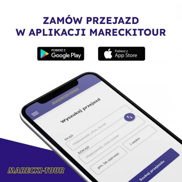 Teraz Zamówisz Przejazd Taniej w Aplikacji Mobilnej MareckiTour! Niech podróżowanie stanie się jeszcze przyjemniejsze! Pobierz aplikację już dziś i korzystaj z przejazdów w nowoczesny i wygodny sposób! Aplikację możesz pobrać na telefon z iOS oraz Android!