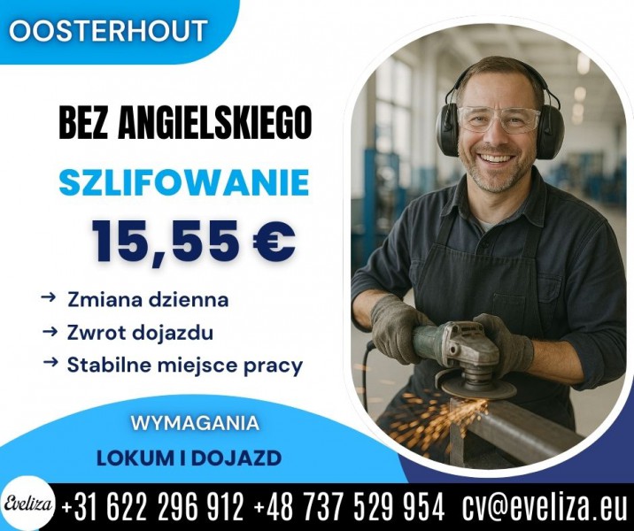 • Zmiana dzienna 7:00 - 15:45 poniedziałek - czwartek 7:00 - 14:45 piątek, możliwa praca w soboty.