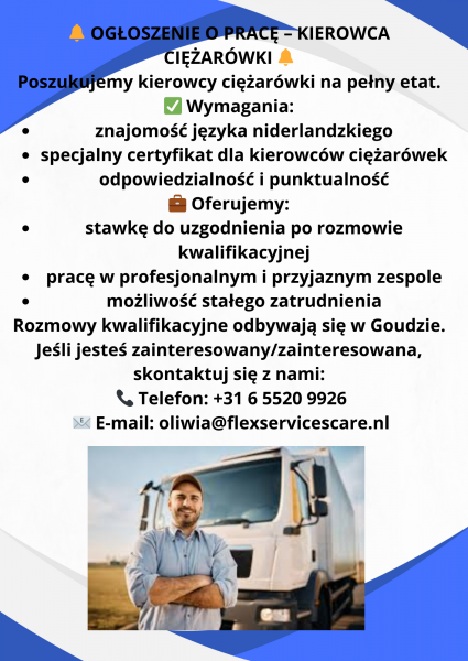 OGŁOSZENIE O PRACĘ – KIEROWCA CIĘŻARÓWKI