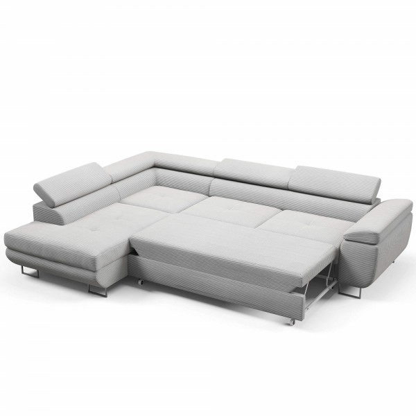 Rozkładana dodatkowa powierzchnia narożnika, która z powodzeniem zastąpi łóżko dla gości, jak i stworzy dodatkowe miejsce odpoczynku.