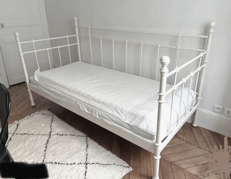 Białe - Solidne metalowe łóżko z materacem (jak nowym)