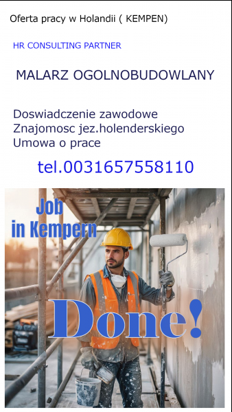 Firma poszukuje malarza budowlanego do pracy w miejscowości Kempen (Holandia).