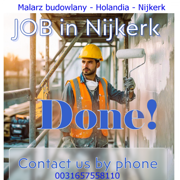Firma poszukuje malarza budowlanego do pracy w miejscowości Nijkerk (Holandia).