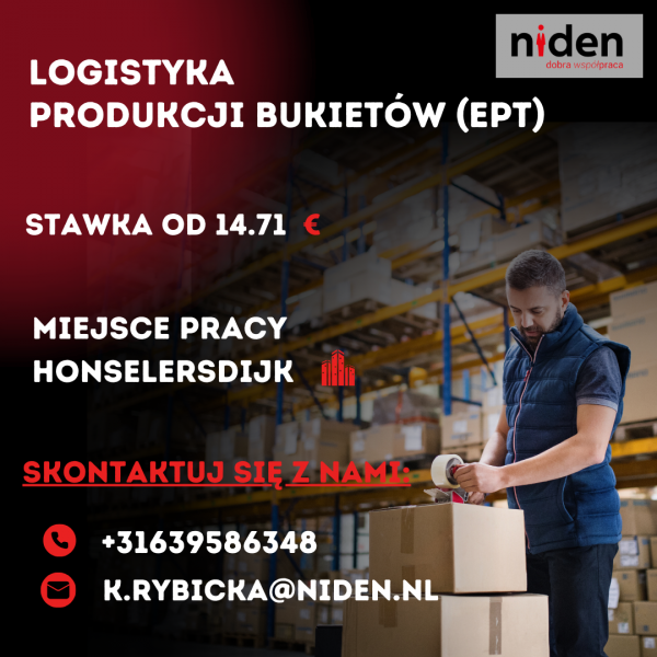 Szukamy pracowników do działu logistyki przy produkcji bukietów. Jeśli masz doświadczenie z EPT i chcesz pracować w przyjaznym zespole – ta oferta jest dla Ciebie!