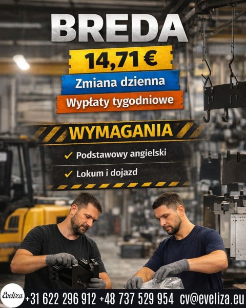 W małym, kameralnym zakładzie w Bredzie szukamy osoby, która: